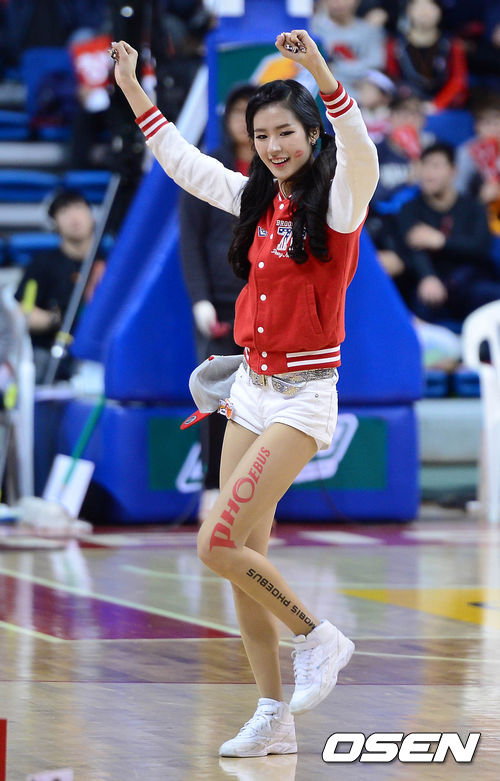 7일 오후 울산 동천체육관에서 열린 '2013-2014 KB국민카드 프로농구' 울산 모비스와 창원 LG의 경기, 치어리더 박기량이 공연을 펼치고 있다.