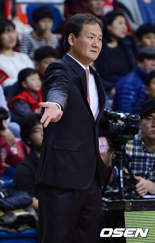 7일 오후 울산 동천체육관에서 열린 '2013-2014 KB국민카드 프로농구' 울산 모비스와 창원 LG의 경기 3쿼터 모비스 유재학 감독이 심판 판정에 불만이 있다는 제스처를 취하고 있다.