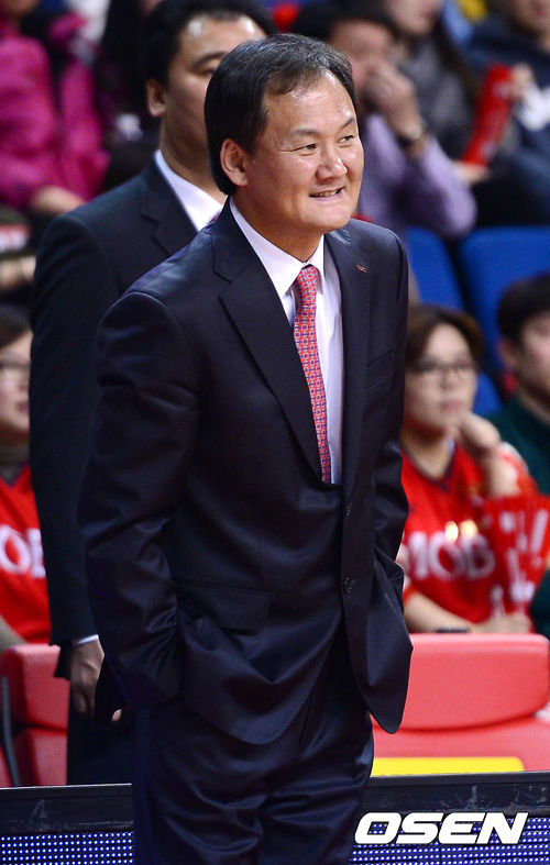7일 오후 울산 동천체육관에서 열린 '2013-2014 KB국민카드 프로농구' 울산 모비스와 창원 LG의 경기 4쿼터 모비스 유재학 감독이 경기를 지켜보고 있다.