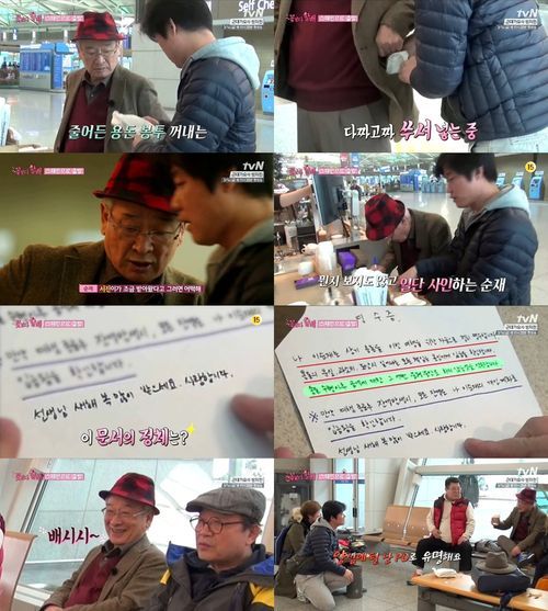 이순재가 “이서진이 조금 받았다고 뭐라고 하면 어쩌냐”는 질문에 그는 “많이 드렸다”고 웃으며 급하게 ‘영수증’이라 쓰인 종이에 이순재의 사인을 받아냈다. 이순재가 읽지도 않고 사인한 영수증에는 ‘돈을 받은 후에 어떤 불만도 표하지 않겠다’는 내용이 담겨있었다
