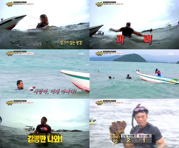 이날 방송에서 추성훈이 이끄는 최강자족은 신입병만족과의 첫 번째 대결로 대왕조개 잡기 대결에 나섰다.