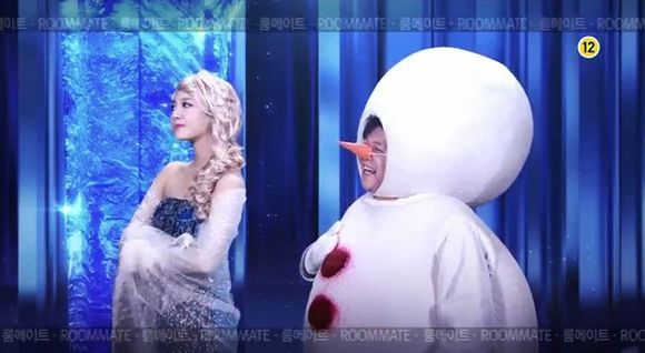 특히 엘사로 변신해 진지하게 노래를 부르는 유라의 모습이 눈길을 끈다. 유라는 엘사 캐릭터와 비슷한 의상을 입고 눈사람의 “같이 살자”는 구애를 받으면서 완벽한 표정 연기를 하고 있다. 엘사 패러디를 하는 유라의 모습에 프로그램에 대한 기대가 높아지는 중.