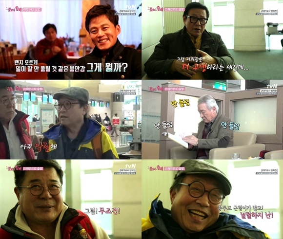 7일 오후 첫 방송된 케이블채널 tvN '꽃보다 할배' 스페인 편(이하 꽃할배)에서는 짐꾼 이서진 없이 여행을 떠난 H4 이순재와 신구, 박근형, 그리고 백일섭의 모습이 그려졌다.
