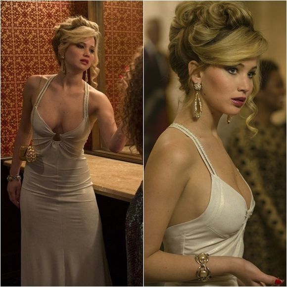 제니퍼 로렌스는 '아메리칸 허슬'에서 로잘린 로젠필드 역을 맡아 아슬아슬한 드레스를 입은 채 섹시한 매력을 발산했다.