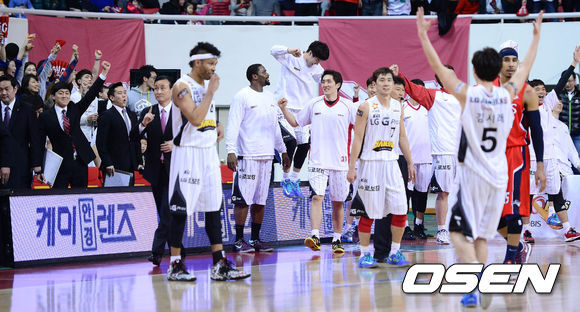 LG는 7일 울산동천체육관에서 벌어진 2013-2014시즌 KB국민카드 프로농구 6라운드에서 홈팀 울산 모비스를 80-67로 물리쳤다. 이로써 양 팀은 시즌 40승 13패, 상대전적 3승 3패로 동률이 됐다. 다만 양 팀의 맞대결 골득실에서 LG가 +9점으로 앞서게 됐다. 따라서 LG는 7일 KT와의 정규시즌 최종전에서 승리할 경우 창단 첫 우승을 확정짓게 된다.