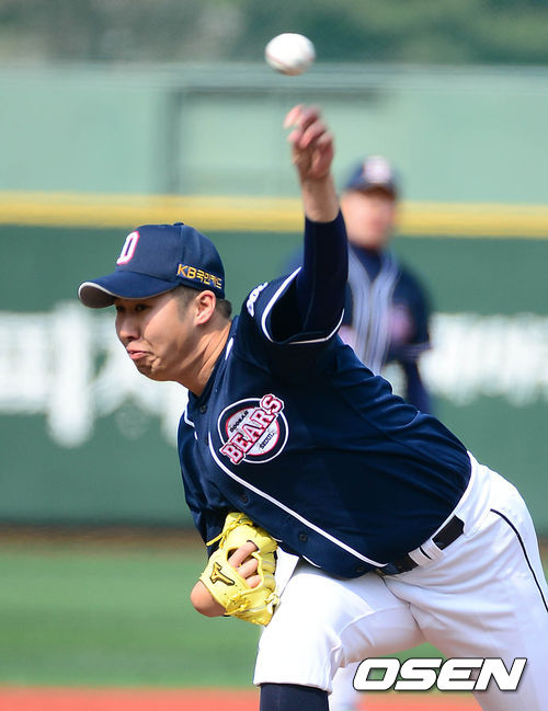 1회말 무사에서 두산 선발투수 유희관이 힘차게 공을 던지고 있다.