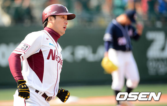 넥센 히어로즈 외야수 이택근이 시범경기 개인 첫 안타를 홈런으로 자축했다.