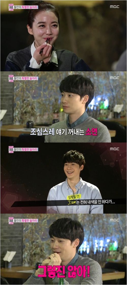 이소연은 질투를 한 적이 있다고 말하면서도 언제인지 고백하지 않았다. 윤한은 “여자들이 질투하는 것 좋아한다”고 밀고 당기기를 했다.