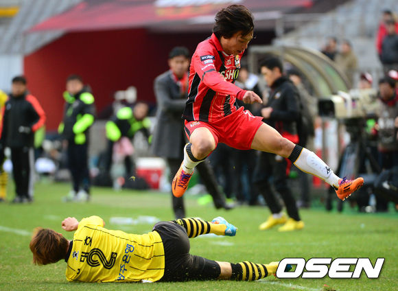 후반 서울 김치우가 전남 김태호의 태클을 피하고 있다./sunday@osen.co.kr