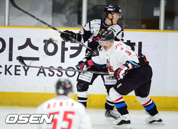 아이스하키 아시아리그 플레이오프 한국 대명 상무-일본제지 크레인스 경기가 3월8일 오후 서울 목동아이스링크에서 열렸다.