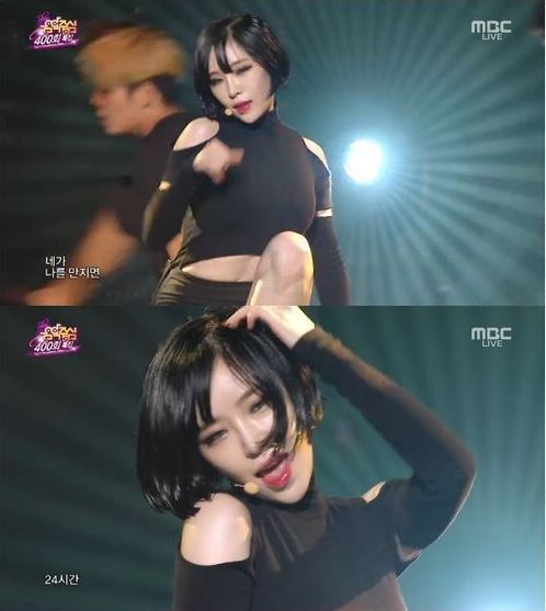 가인은 8일 방송된 MBC '쇼! 음악중심'에서 선미의 전매특허인 맨발 섹시댄스를 완벽하게 소화했다.