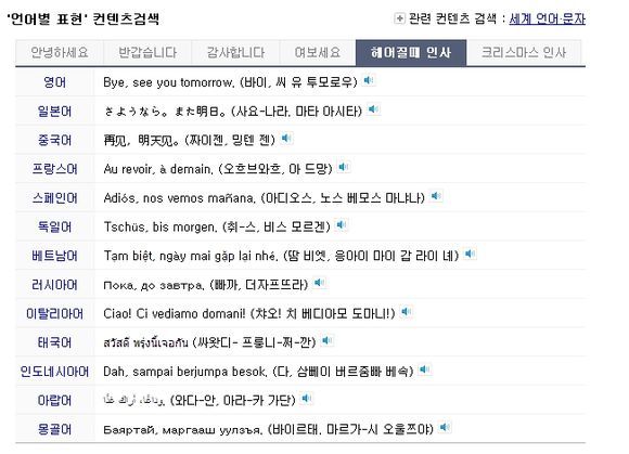 최근 한 온라인 포털사이트에는 나라별 헤어질 때 인사가 영어, 일본어, 중국어, 러시아어, 아랍어 등 다양한 언어로 표현돼 있다.