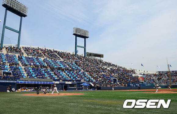겨우내 야구에 목말랐던 관중들은 개방된 내야석에 하나둘 자리를 잡아 경기가 시작하기를 기다렸다. 오후 12시부터 약 30분 동안 팬들을 위한 이벤트가 끝나고 첫 시범경기는 개막을 알렸다. 경기 시작 후에도 몰려든 관중들은 내야석 전부를 차지했다.