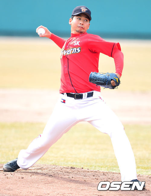 SK 우완 에이스 윤희상(29)이 시범경기 첫 등판을 가졌다.
