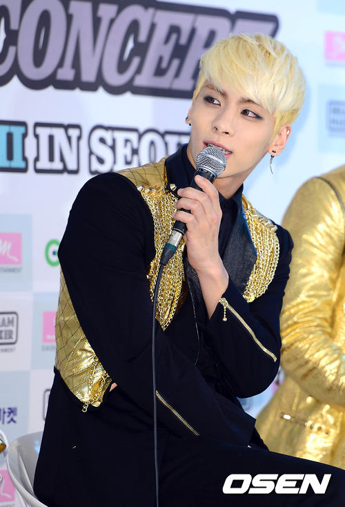 그룹 샤이니 종현이 취재진의 질문에 답을 하고 있다.