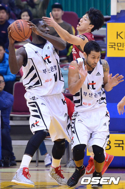 9일 오후 창원 실내체육관에서 열린 '2013-2014 KB국민카드 프로농구' 창원 LG와 부산 KT의 경기 1쿼터 파틸로가 리바운드볼을 잡고 있다.