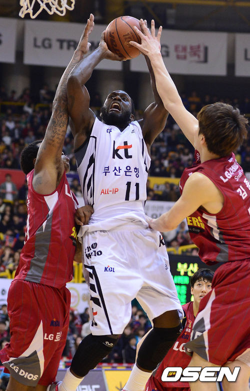 9일 오후 창원 실내체육관에서 열린 '2013-2014 KB국민카드 프로농구' 창원 LG와 부산 KT의 경기 1쿼터 파틸로가 골밑슛을 시도하고 있다.