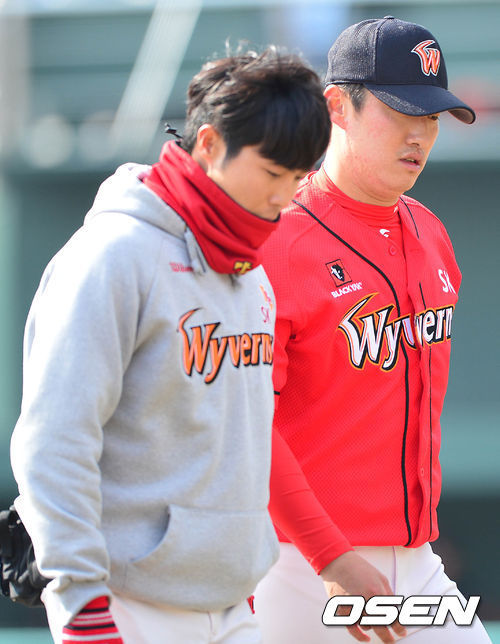 SK 관계자는 "마지막 연습 투구 중 우측 허리를 삐끗했다. 우측 허리 염좌일 것 같다는 게 트레이너의 판단"이라며 "규정상 마운드에 오른 투수는 한 타자를 상대해야 하는데 같은 유형의 투수를 올렸다"고 설명했다. SK는 여건욱과 같은 우완 제춘모가 구원등판했다.