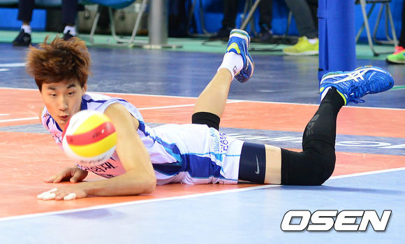 2세트 삼성화재 박철우가 볼을 눈 앞에 두고 놓치고 있다.