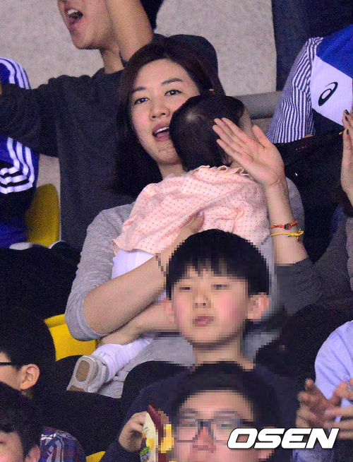 삼성화재 박철우 아내 신혜인이 경기장을 찾아 응원을 하고 있다.