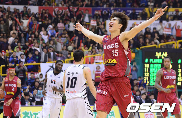 창원 LG는 9일 창원실내체육관에서 벌어진 2013-2014시즌 KB국민카드 프로농구 정규리그 최종전에서 부산 KT를 95-85로 제압했다. 40승 14패 고지를 밟은 LG는 모비스와 동률이 됐지만 맞대결 골득실에서 앞서 정규리그 우승을 확정지었다. 지난 1997년 창단한 LG는 무려 17년 만에 첫 정규리그 우승의 감격을 누리게 됐다. / baik@osen.co.kr