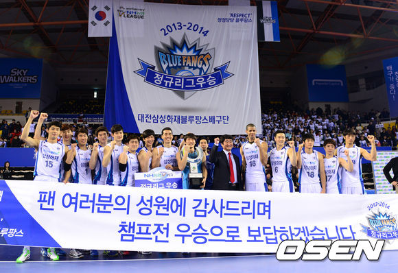삼성화재는 9일 오후 천안유관순체육관서 열린 NH농협 2013-2014시즌 V리그 남자부 5라운드 현대캐피탈과 원정 경기서 세트스코어 3-1(22-25, 25-23, 25-17, 25-20)로 역전승을 거두며 정규리그 우승을 확정지었다.