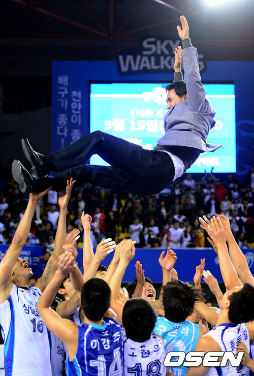 삼성화재 안민수 구단주가 헹가래를 받고 있다. / jpnews@osen.co.kr