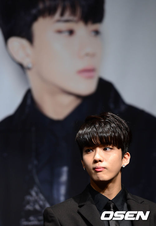 그룹 B.A.P 영재가 취재진의 질문을 듣고 있다.