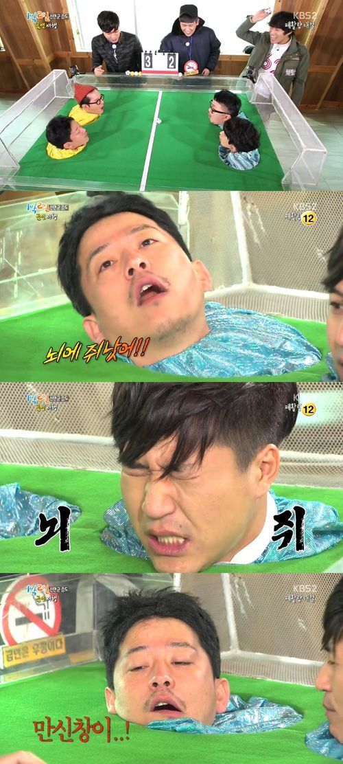 '1박2일'의 멤버들이 입김축구에 만신창이가 됐다.
