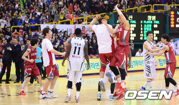 창원 LG는 9일 창원실내체육관에서 벌어진 2013-2014시즌 KB국민카드 프로농구 정규리그 최종전에서 부산 KT를 95-85로 제압했다. 40승 14패 고지를 밟은 LG는 모비스와 동률이 됐지만 맞대결 골득실에서 앞서 정규리그 우승을 확정지었다. 지난 1997년 창단한 LG는 무려 17년 만에 첫 정규리그 우승의 감격을 누리게 됐다.