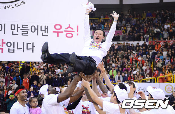 LG는 9일 창원실내체육관에서 벌어진 2013-2014시즌 KB국민카드 정규리그 최종전에서 부산 KT를 95-85로 물리쳤다. 이로써 LG는 40승 14패로 정규리그 우승을 확정지었다. 지난 1997년 창단한 LG는 정규리그 준우승만 4번 하는 설움 끝에 고진감래를 맛보게 됐다.
