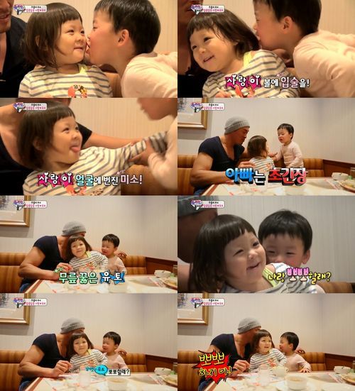 그러나 추사랑이 고개를 돌려 피하자 유토는 무릎을 꿇고 “뽀뽀할래?”라고 물었고 추사랑은 부끄러운 듯 유토를 보지 못했다. 결국 추성훈은 당황해 하며 “뽀뽀 하지마”라고 말해 웃음을 자아냈다.