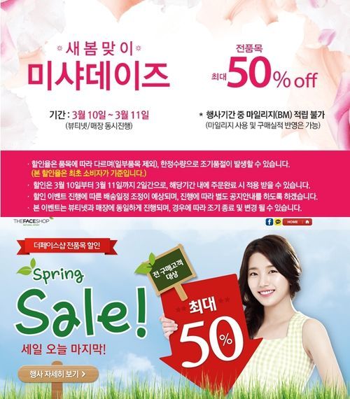 10일 코스메틱브랜드 더페이스샵과 미샤가 세일을 진행한다.