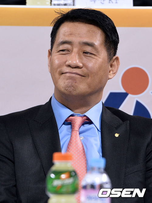 10일 오전 서울 잠실학생체육관서 진행된 '2013~2014 KB국민카드 프로농구' 플레이오프 미디어데이에서 오리온스 추일승 감독이 미소 짓고 있다