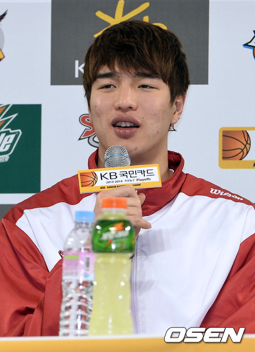 10일 오전 서울 잠실학생체육관서 진행된 '2013~2014 KB국민카드 프로농구' 플레이오프 미디어데이에서 LG 김종규가 소감을 말하고 있다
