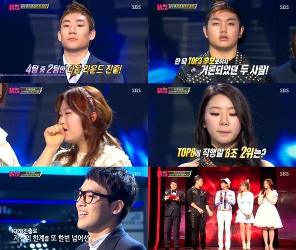 이날 'K팝스타'는 B조 한희준, 배민아, 남영주, 장한나 등이 펼치는 TOP8 결정전으로 꾸며졌다. 검증된 실력파 보컬들이 총 집합한 만큼 뜨거운 경쟁을 벌였으며, 특히 지난 시즌 악동뮤지션에 필적할 개성파 자작곡 팀 썸띵(정세운-김아현)이 가세, 종잡을 수 없는 경연구도를 만들었다.