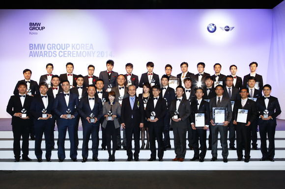 BMW 그룹 코리아는 10일 서울 그랜드 하얏트 호텔에서 8개 공식딜러사 임직원 약 400 명이 참석한 가운데 'BMW 그룹 코리아 어워드 2014'를 개최하고 BMW와 MINI의 세일즈, 서비스 분야 우수직원에 대한 시상식을 가졌다.