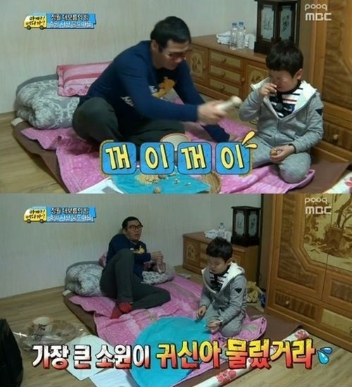 이 같은 미신을 처음 접한 윤후는 혹시나 눈썹이 하얗게 될까봐 아빠가 잠들지 않게 옆에서 계속 깨웠다. 윤민수가 잠들려 하자 윤후는 눈물을 흘리며 무서움을 감추지 못했다. 이어 윤후는 풍등에 “귀신이 나타나지 않았으면 좋겠다. 엄마아빠 건강하게 해달라”는 진심이 담긴 소원을 적어 눈길을 끌었다.