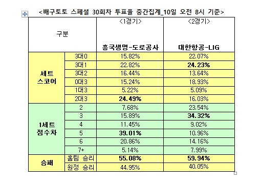 2013-2014시즌 프로배구 대상 배구토토 스페셜 30회차 중간집계 결과