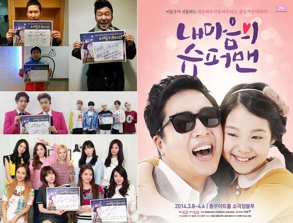 방송인 신동엽, 김병만, 그룹 동방신기, 소녀시대 등이 같은 소속사 식구인 이동우의 연극 '내 마음의 슈퍼맨' 응원에 나섰다.