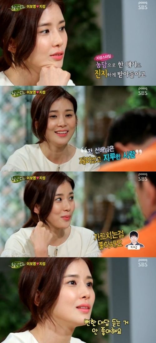 이날 이보영은 "지성이 내 스타일은 아니었다"며 "이상형은 나와 다른 사람이다. 규칙적이고 안정적이고, 연예인 아닌 사람에 대한 환상이 있었다"고 털어놨다.