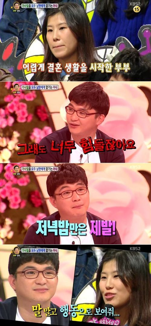 10일 오후 방송된 KBS 2TV '대국민 토크쇼 안녕하세요'(이하 '안녕하세요')에서는 가사일을 모두 남편에게 맡기는 아내를 둔 남편의 고민이 등장했다.