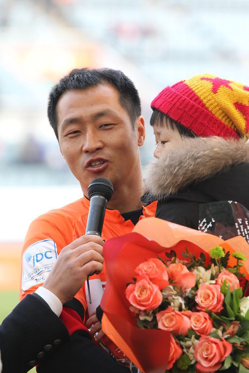 2002년 제주의 전신인 부천SK에 입단한 한동진은 지난해까지 12년 동안 제주의 골문을 지켰다. 하지만 단 한 번도 최고인 적이 없었다. 그 동안 최현, 조준호와 같은 기라성 같은 선배들의 그림자에 가려 2~3인자에 머물렀다. 어렵사리 주전 자리에 올랐을 땐 후배인 김호준에게 스포트라이트를 내줘야 했다. 프로통산 122경기 출전에 155실점. 기록지상으로 눈에 띄지 않지만 그가 언제나 빛나 보였던 이유는 늘 푸른 소나무처럼 언제나 한결 같은 마음과 성실한 자세로 12년간 제주를 지켰다는 사실이다.
