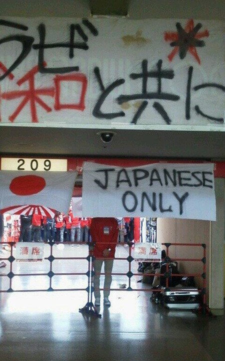 지난 8일 일본 사이타마 스타디움 2002에서 열린 J리그 2라운드 우라와와 사간 도스의 경기에서 일부 우라와 팬이 경기장 출입구에 'JAPANESE ONLY'라는 현수막을 내걸어 문제가 됐다. 일본인만 입장 가능하다는 현수막 문구는 충분히 인종 차별 행위로 해석될 수 있어 일본 내에서도 우라와의 서포터를 성토하는 분위기가 형성됐다.