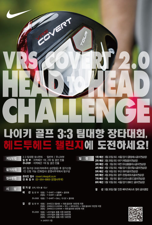 나이키 골프(대표 박성희, www.nikegolf.co.kr)가 ‘VR_S 코버트 2.0’ 클럽 출시를 기념해 오는 20일부터 전국 최고의 장타자를 가리는 3대3 팀 대항전 ‘2014 헤드투헤드 챌린지’를 개최한다.