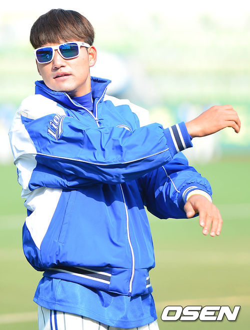11일 오전 대구 시민구장에서 열리는 '2014 프로야구 시범경기' 삼성 라이온즈와 SK 와이번스의 경기를 앞두고, 삼성 김상수가 몸을 풀고 있다.