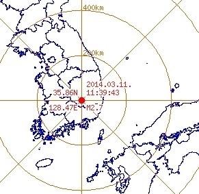 11일 기상청에 따르면 금일 오전 11시 39분께 대구 달성군 서부서쪽 9km 지역에서 규모 2.7 지진이 발생했다. 이번 지진은 일부 시민만이 미세한 건물 진동과 소음 등을 감지할 정도의 미미한 규모로 알려졌다.