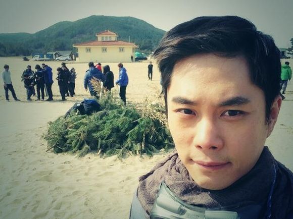 이기찬은 11일 오전 자신의 트위터를 통해 "TV조선 '불꽃속으로' 첫 촬영. 아직 바닷바람이 차다. 뒤에 잘 안보이지만 최수종 선배님은 불꽃연기 중"이라는 글과 함께 사진 한 장을 게재했다.