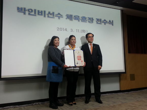 체육훈장은 우리나라 체육 발전에 기여한 공적이 뚜렷한 자에게 수여하는 것으로 박인비에 앞서 박세리, 최경주, 박지은, 김미현, 양용은 등의 프로골퍼가 수상한 바 있다.
