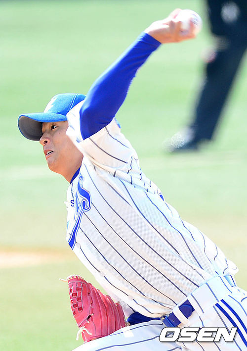 5회초 SK 공격 때 구원 등판한 삼성 투수 조현근이 힘차게 공을 뿌리고 있다.